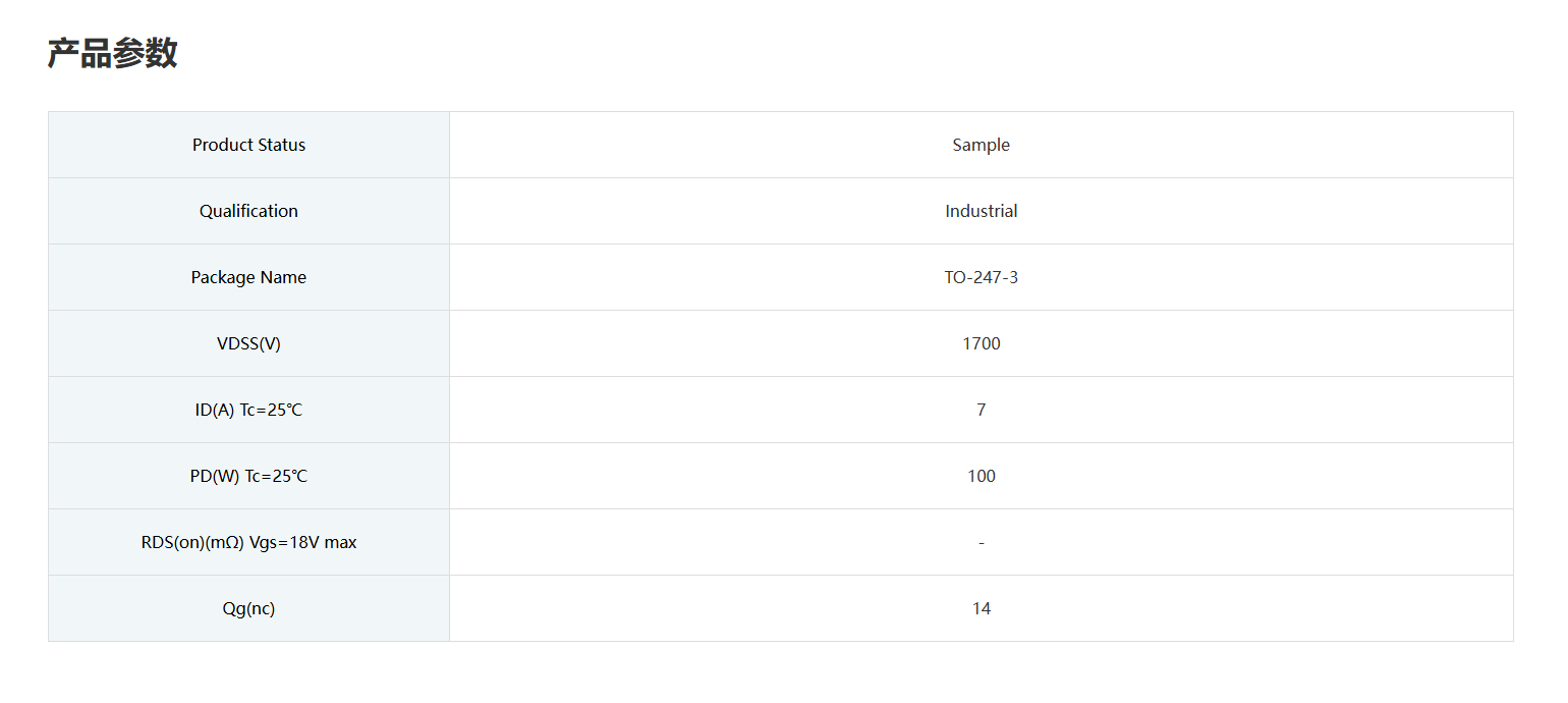 SiC 工业消费类SiC MOSFET ZMC100KR170LC3